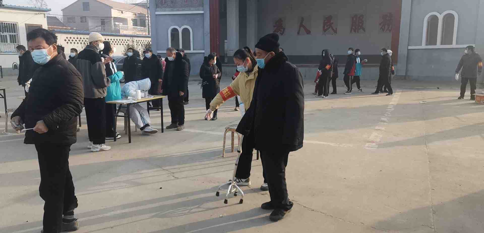 招募志愿者配合医务工作人员采集核酸,维持秩序。