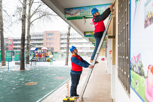 滑县:初雪中的校园“守护者”